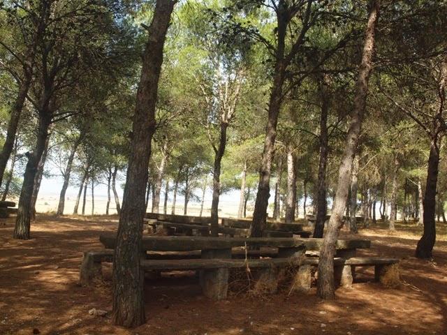 És molt gran i no vam contar les taules de tantes que n'hi ha; almenys 20 o 30. La zona de les taules, ermita, mirador i zona de jocs estan a la part superior del turó que és una gran pineda.