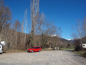 El nom li he possat jo perquè no hi havia cap cartell amb el nom, però si un amb el nom del'aparcament i li he possat el mateix. És un punt de partida d'excursions i la gent ho utilitza de "camp base". A prop hi ha el riu Flamisell i el Campament Juvenil El Famisell, no sé si és possible acampar-hi, ho podeu preguntar a l'Ajuntament de La Pobleta de Bellveí. Crec que des d'aquí podeu anar al llac de Montcortés, ho haureu de buscar a internet.