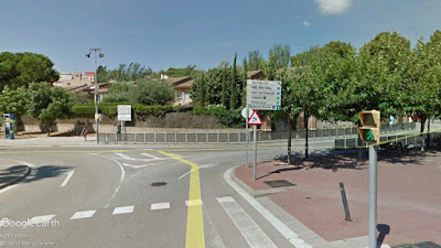 Fins al primer carrer a l'esquerra, que finalment és el carrer Vallespir. A la dreta de la foto podeu veure la parada del bus que deixa més a prop de l'àrea de pícnic.